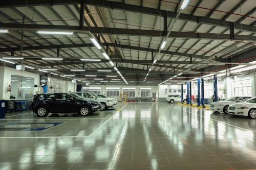 - Hệ thống Dịch vụ - Bảo hành - Sửa chữa bao gồm" khu Dịch vụ rộng hơn 2000 m2 với 12 khoang sửa chữa có thể chăm sóc được 12 xe cùng lúc. Xưởng dịch vụ có công suất sửa chữa và đầy đủ các trang thiết bị chuyên dụng hiện đại theo tiêu chuẩn Châu Âu, dịch vụ sửa chữa xe chất lượng cao cùng đội ngũ tư vấn bán hàng, kỹ sư, kỹ thuật viên chuyên nghiệp được đào tạo chính quy theo tiêu chuẩn Jaguar-Land Rover toàn cầu.